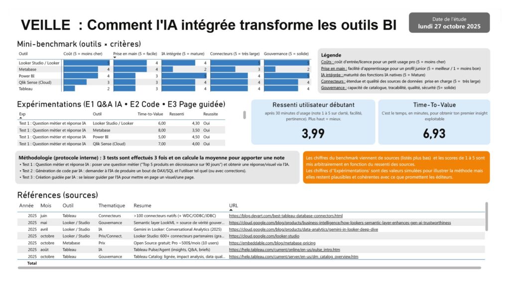 Cette veille montre que le choix de l’outil a un impact direct sur l’efficacité et la cohésion des équipes data, tout en répondant à l’évolution rapide du secteur BI sous l’impulsion de l’IA.