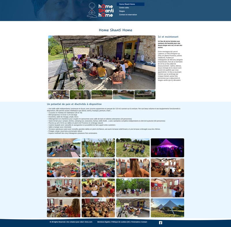 homeshantihome.fr est une vitrine digitale chaleureuse et professionnelle qui capture l’essence du lieu de ressourcement. En utilisant Elementor pour un design sur mesure et WordPress pour la flexibilité des mises à jour, il sert efficacement d’outil de promotion et de plateforme d’information pour les stages de méditation, danse, tantra et autres activités de bien-être.
