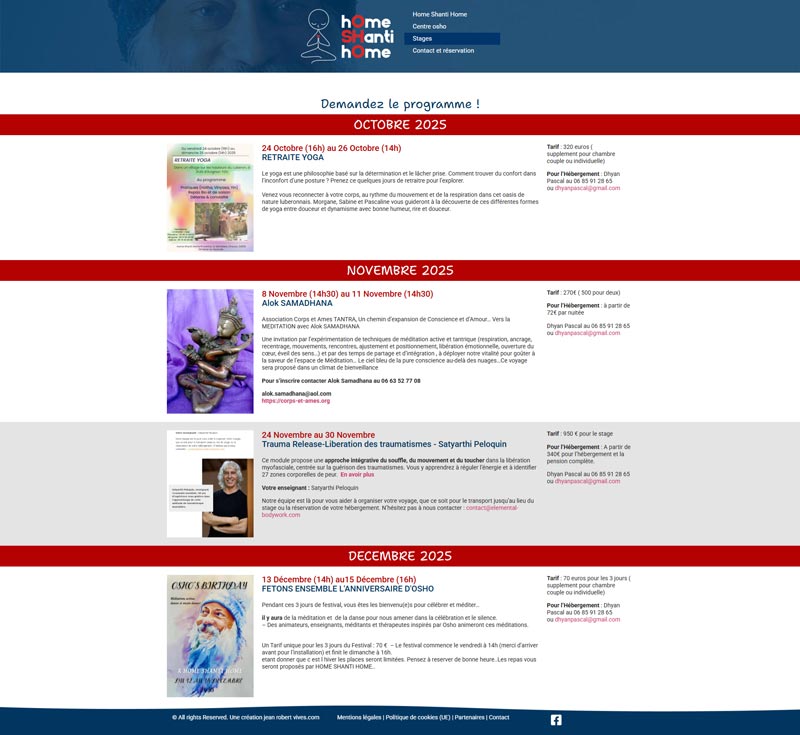 Ce projet a consisté en la création d’un site vitrine mettant en valeur un lieu de stages et de méditation (Centre Osho) situé entre Montagne de Lure et Luberon. Le site vise à présenter le domaine, ses infrastructures d’accueil et le calendrier des événements pour attirer les organisateurs de stages et les participants en quête de ressourcement.
