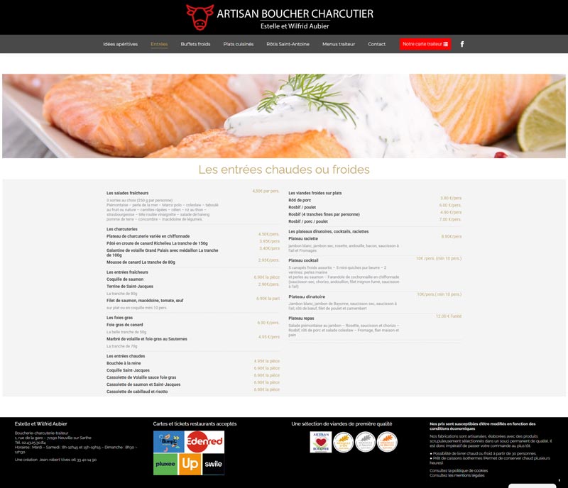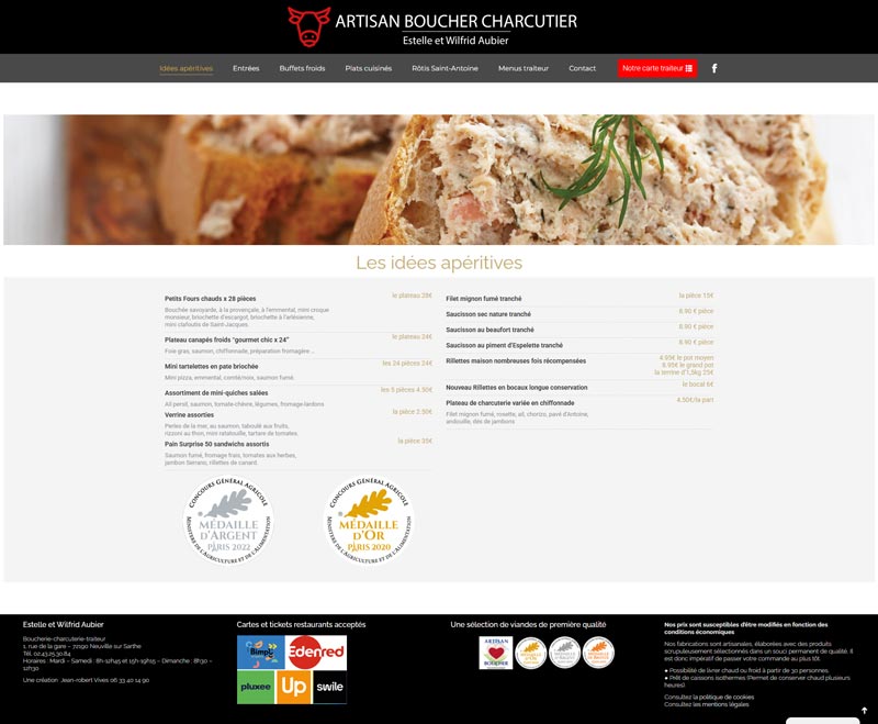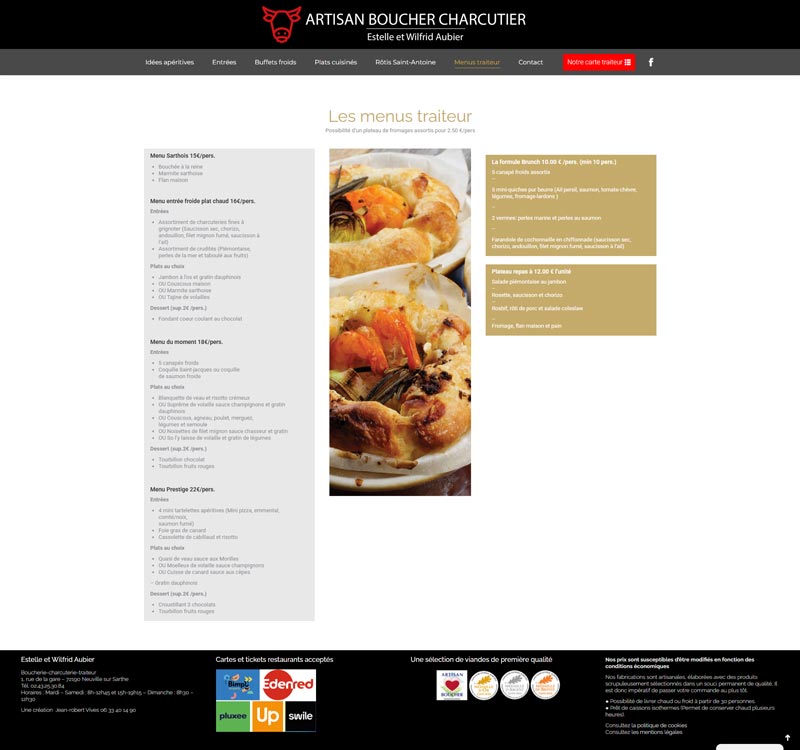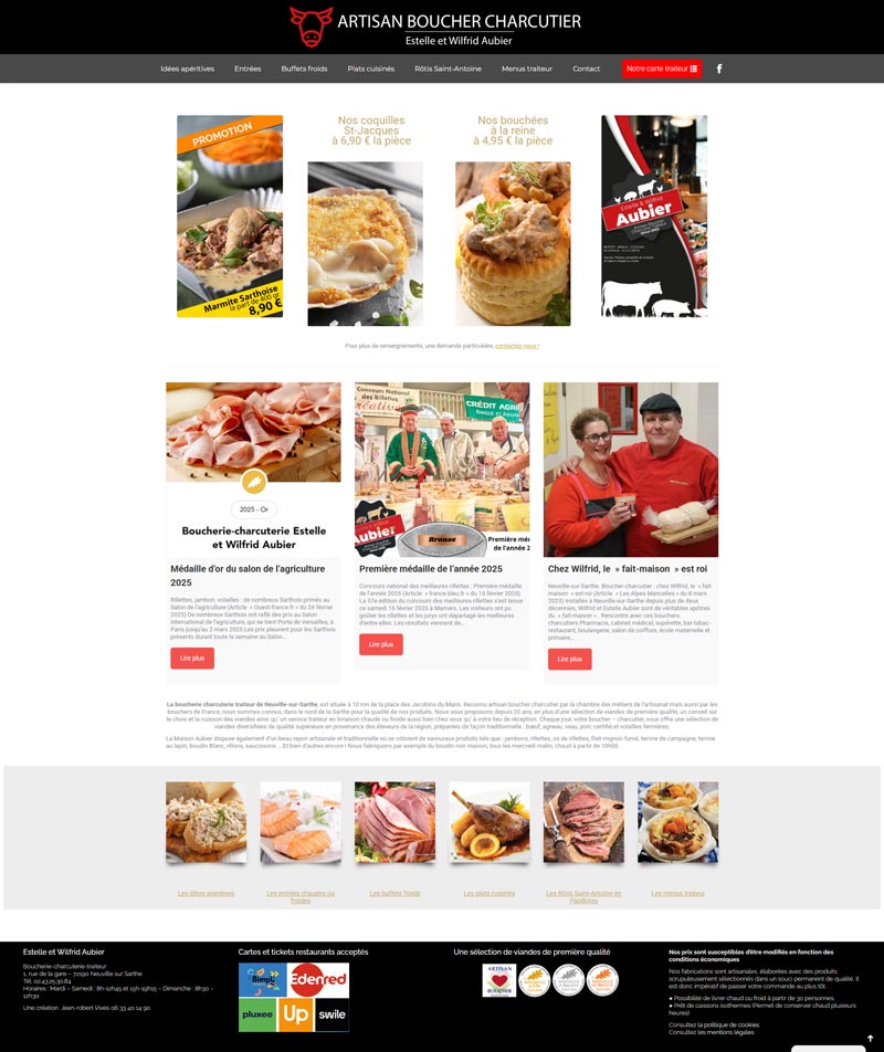 Ce projet consistait en la création du site vitrine pour la Boucherie, Charcuterie, Traiteur Aubier (Neuville-sur-Sarthe). L’objectif est de présenter la qualité artisanale des produits, de mettre en avant le service traiteur complet (chaud et froid), et d’informer la clientèle locale sur les distinctions obtenues (Médailles d’Or).