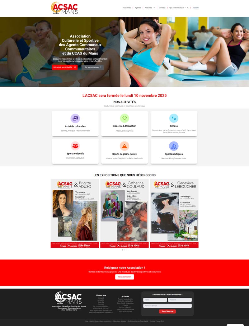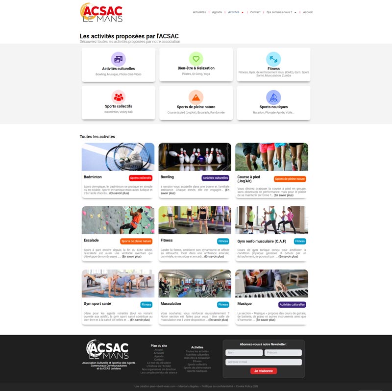 Ce projet représente une création web complète et une refonte de l’identité visuelle pour l’ACSAC Le Mans (Association Culturelle et Sportive des Agents Communaux). Le site sert désormais de plateforme centrale moderne et informative, conçue pour dynamiser la communication interne et promouvoir efficacement la richesse des activités offertes aux adhérents.