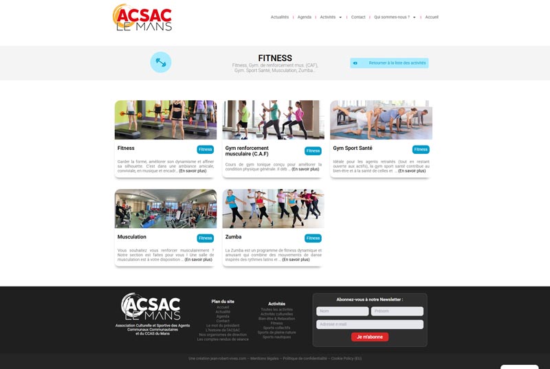 Le projet acsac-lemans.fr est un exemple de création intégrale où le développement web et l’identité visuelle ont été repensés pour servir les objectifs de l’association. Alliant la flexibilité de WordPress à la puissance créative d’Elementor, ce site offre une plateforme moderne, esthétique et fonctionnelle. Il renforce la communication de l’ACSAC Le Mans et valorise l’engagement de l’association auprès des agents communaux, en proposant un accès clair et organisé à une multitude d’activités.