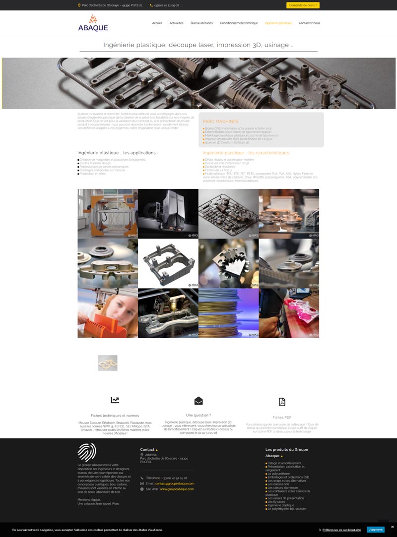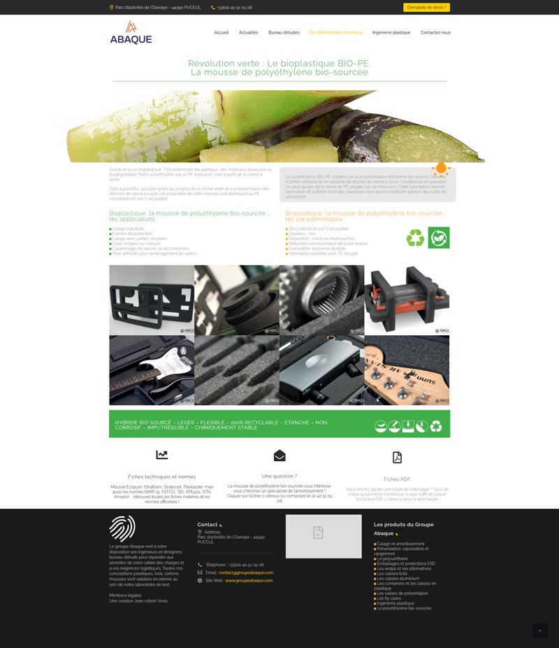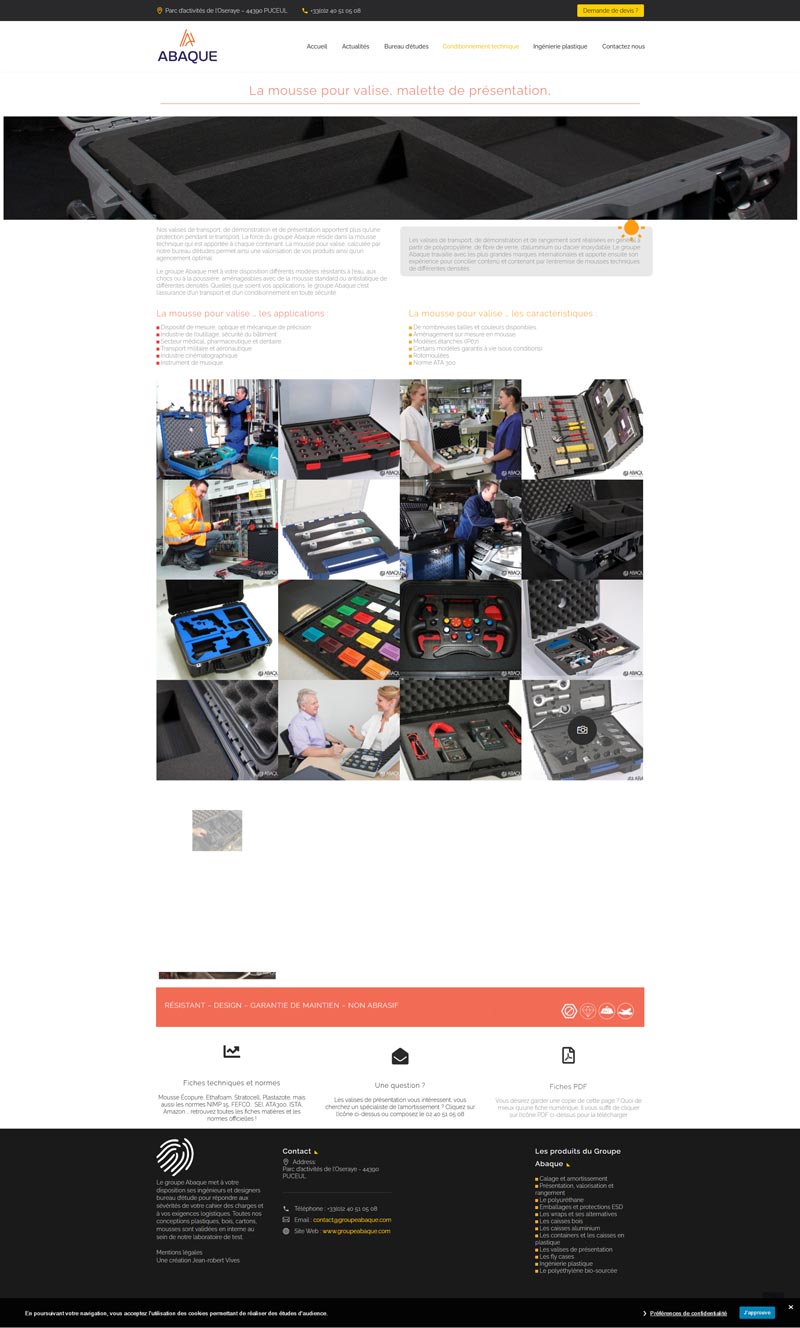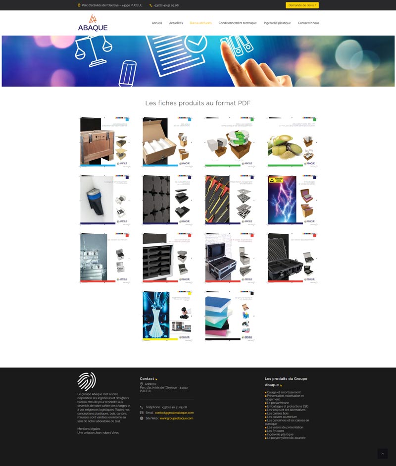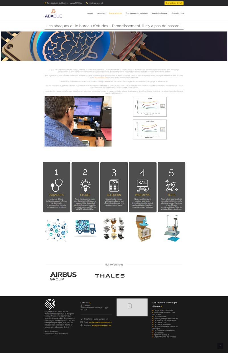 Ce projet consistait en la refonte du site vitrine du Groupe Abaque, fabricant français d’emballages techniques et industriels sur mesure. L’objectif est de structurer et de présenter leur offre très technique (calage, amortissement, caisses multi-matériaux) et de valoriser le savoir-faire du bureau d’études.