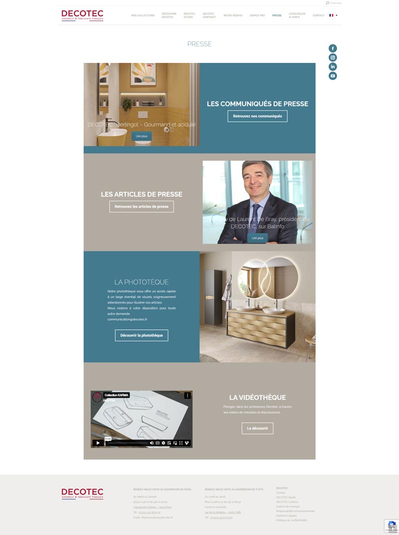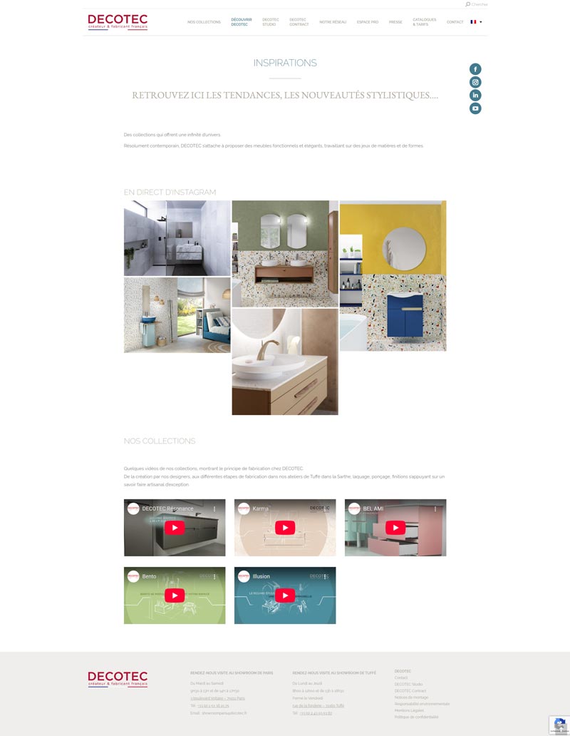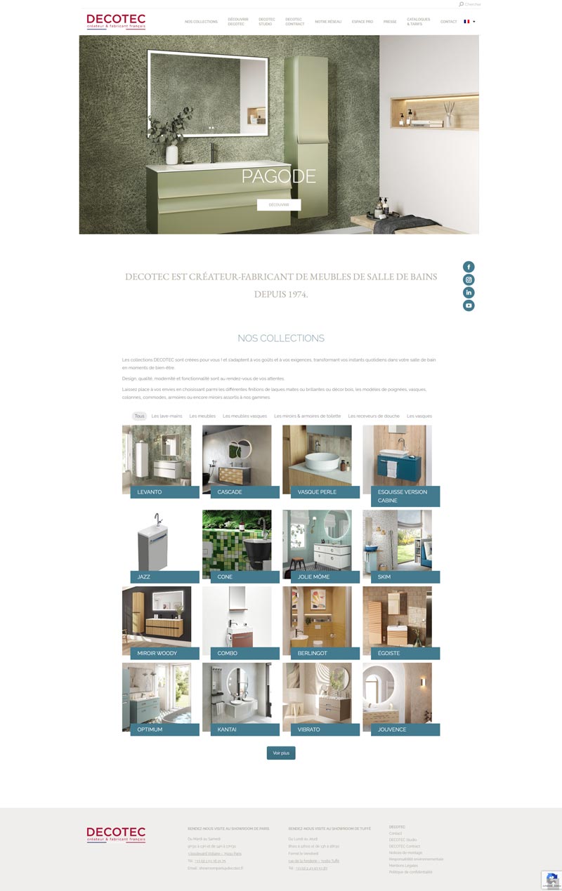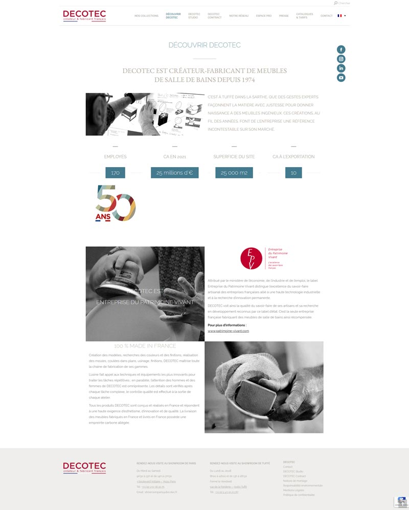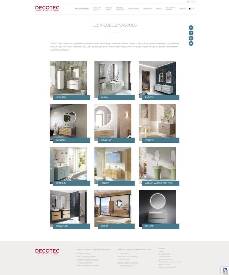 Ce projet consistait en la reconstruction complète et la livraison du site vitrine de Decotec, créateur et fabricant français de meubles de salle de bains. L’enjeu majeur fut de reprendre un projet en crise et d’assurer une livraison professionnelle suite à une escroquerie subie par l’entreprise de la part d’un précédent prestataire.